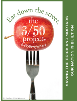 What happens when you mix my creative juices with a rumbling stomach that wants to be fed? The latest promotion from The 3/50 Project. Welcome to “Eat Down the Street,” in support of independent, locally owned restaurants from coast to coast!
